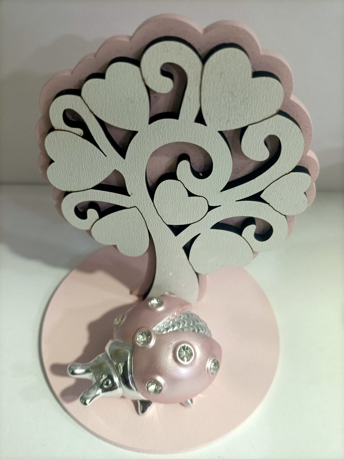 BOMBONIEREA NUOVA COLLEZIONE 2024 ALBERO VITA ROSA E BIANCO CON COCCINELLA SMALTATA ROSA CON DETTAGLI DI STRASS PARTICOLARE E STUPIRE I TUOI INVITATI MISURE ALTEZZA ALBERO 10 CM CIRCA LUNG COCCINELLA 4.5 CM