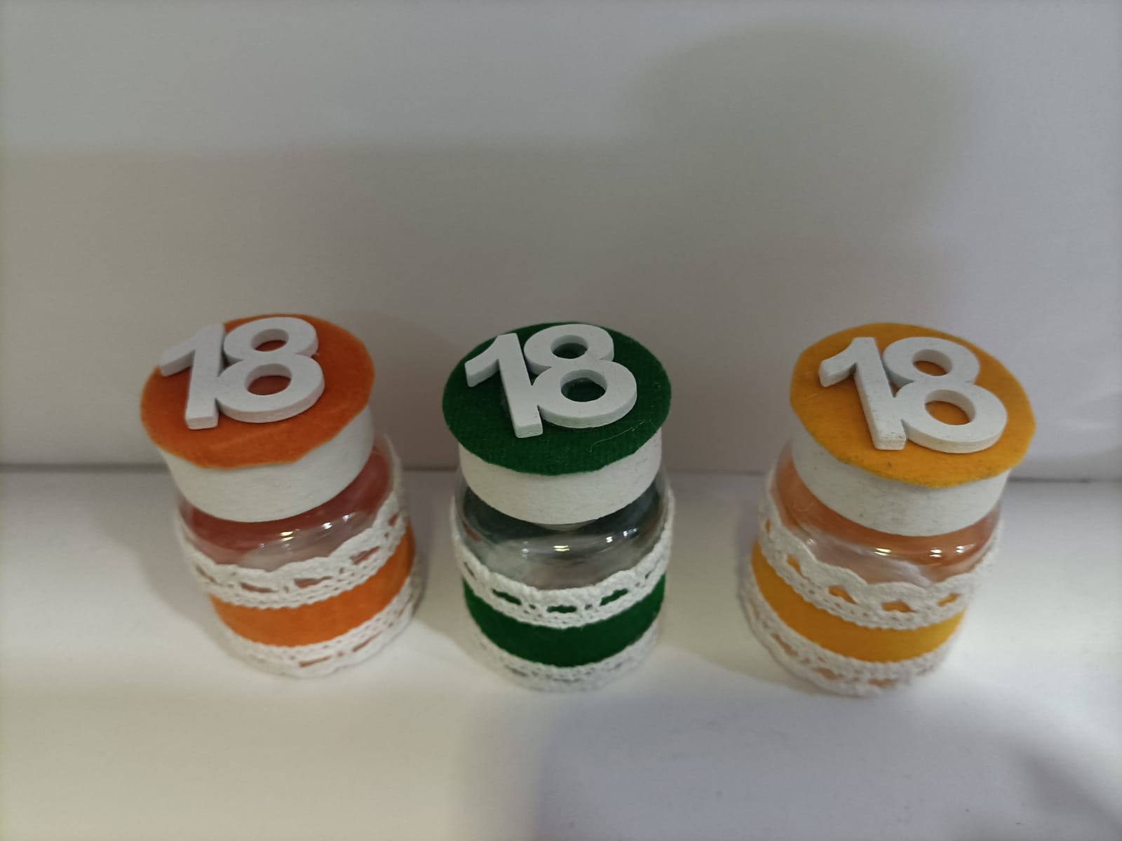 BOMBONIERA COMPLEANNO PERĀ 18 ANNI BARATTOLINI PORTA CONFETTI IN TRE COLORAZIONI ASSORTITE MISURA H 5CM LARG 3.5CM