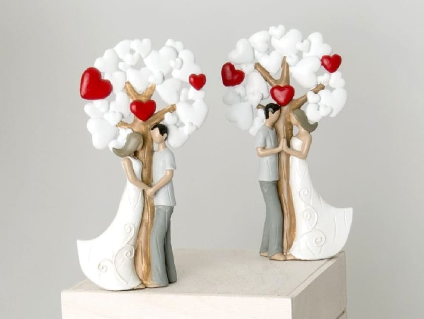Bomboniera Coppia innamorati con albero della vita e cuori Rossi in resina idea regalo , Wedding , bomboniera per matrimonio anniversario e altre occasioni.