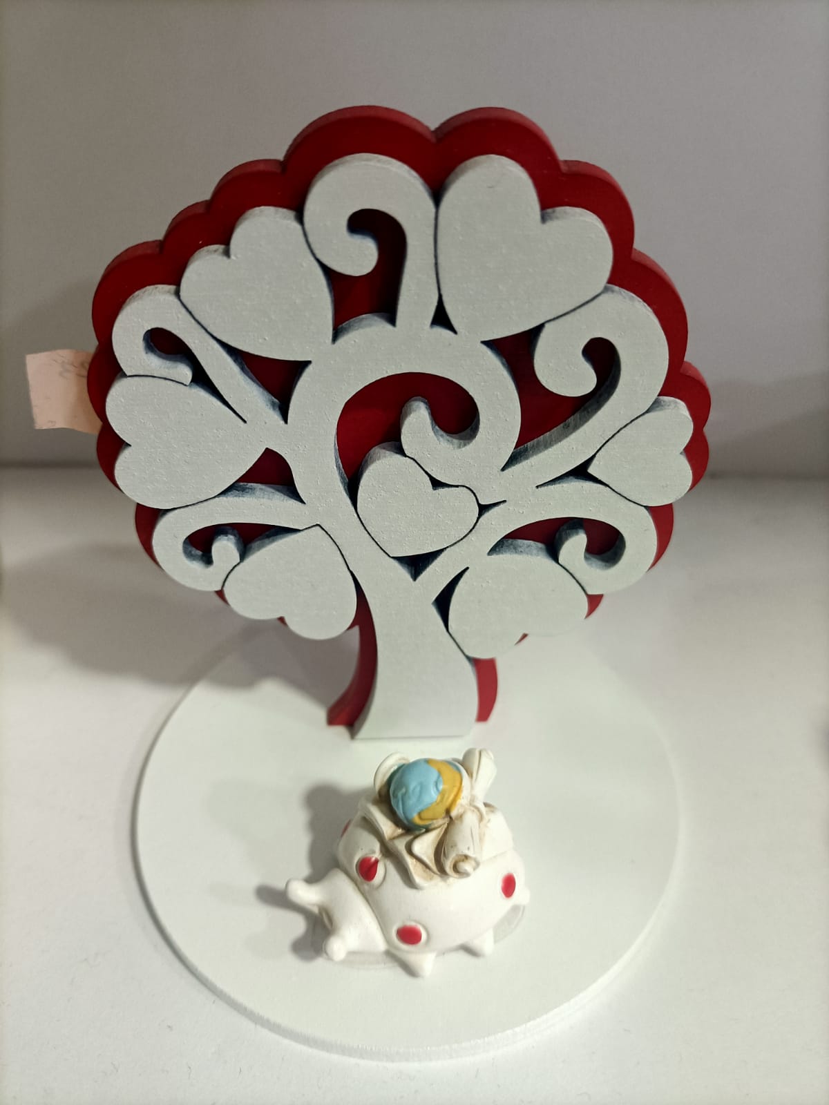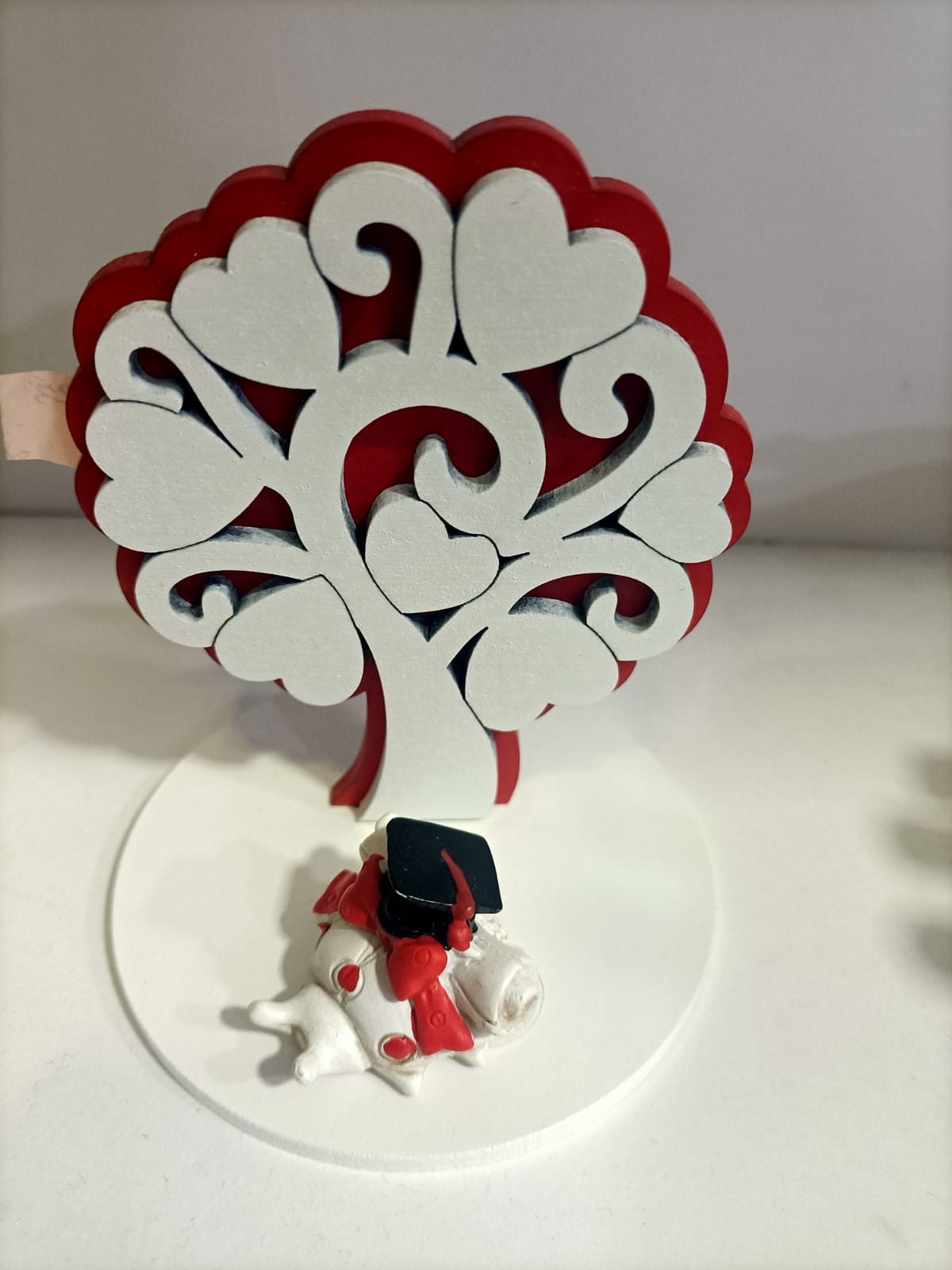 BOMBONIERA LAUREA ELEGANTE ALBERO IN LEGNO BIANCO E ROSSO CON SOGGETTO COCCINELLA IN 3 MODELLI ASSORTITI ALBERO H 10 CM CIRCA COCCINELLE LUNG 3 CM NON LA SOLITA BOMBONIERA MA UN VERO E PROPIO OGGETTO D’ARREDO PER FESTEGGIARE AL MEGLIO IL TUO GRANDE TRAGUARDO