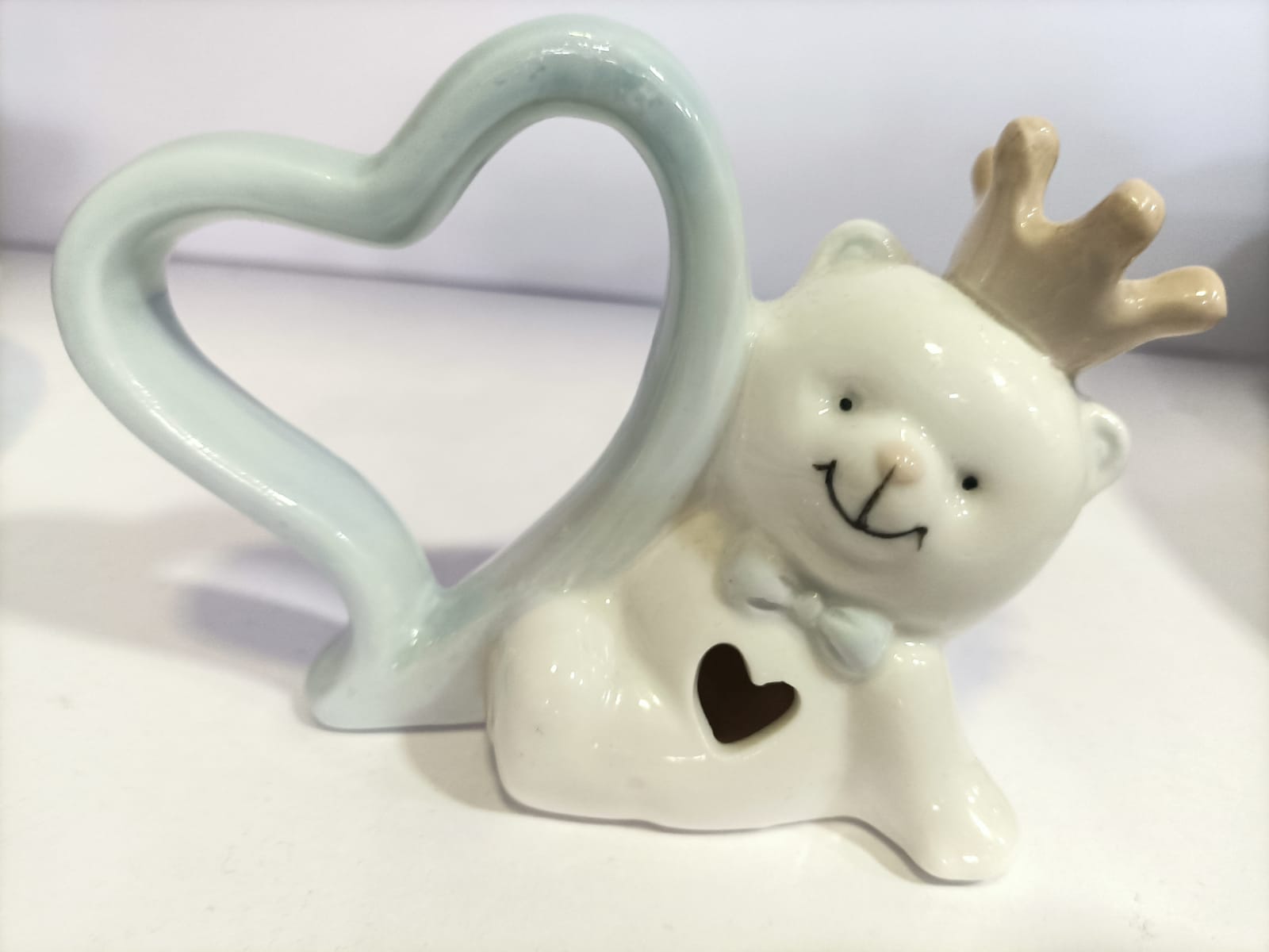 ORSETTO CON CUORE IN PORCELLANA E CORONCINA  H8 X 11.5X4 CM  BOMBONIERA PER BATTESIMO NASCITA PER RENDERE UNICO IL TUO EVENTO.