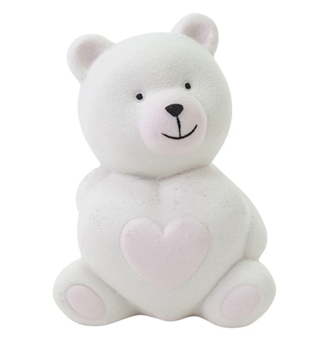 Bomboniera orsetto cuore bianco e rosa in porcellana h 8×6,5 cm ideale per battesimo, nascita,o festa a tema.
