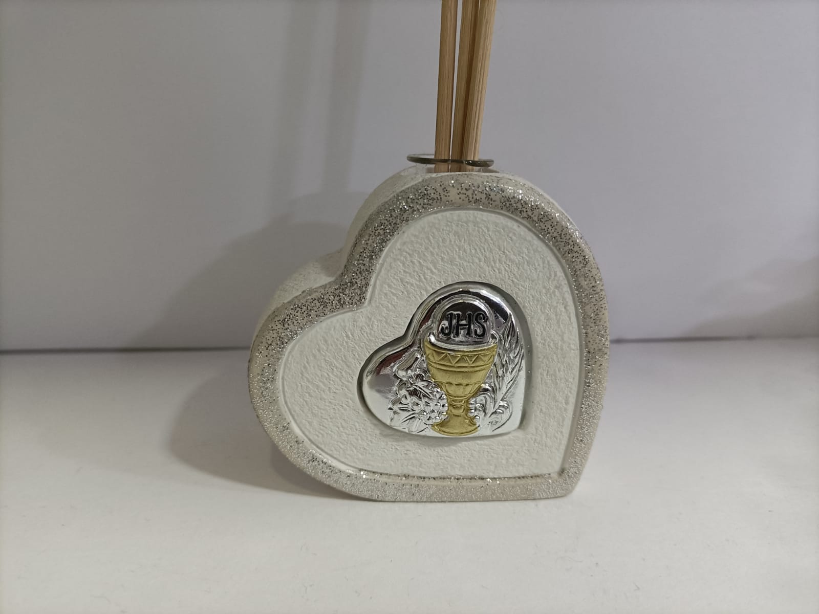 Bomboniera Profumatore Cuore materiale polvere di marmo placchettina cuore in argento H 7 cm LARG 7 cm completo di scatola