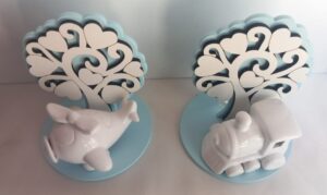 Bomboniera Economica: Profumatore per Ambienti a Forma di Albero della Vita con scelta di personalizzazione tra mezzi o animaletti su Albero della vita rosa o azzurro. Su entrambe le soluzioni sono applicati tre soggetti assortiti a vostra scelta di colore bianco vedi foto .Completo di Confezione in omaggio