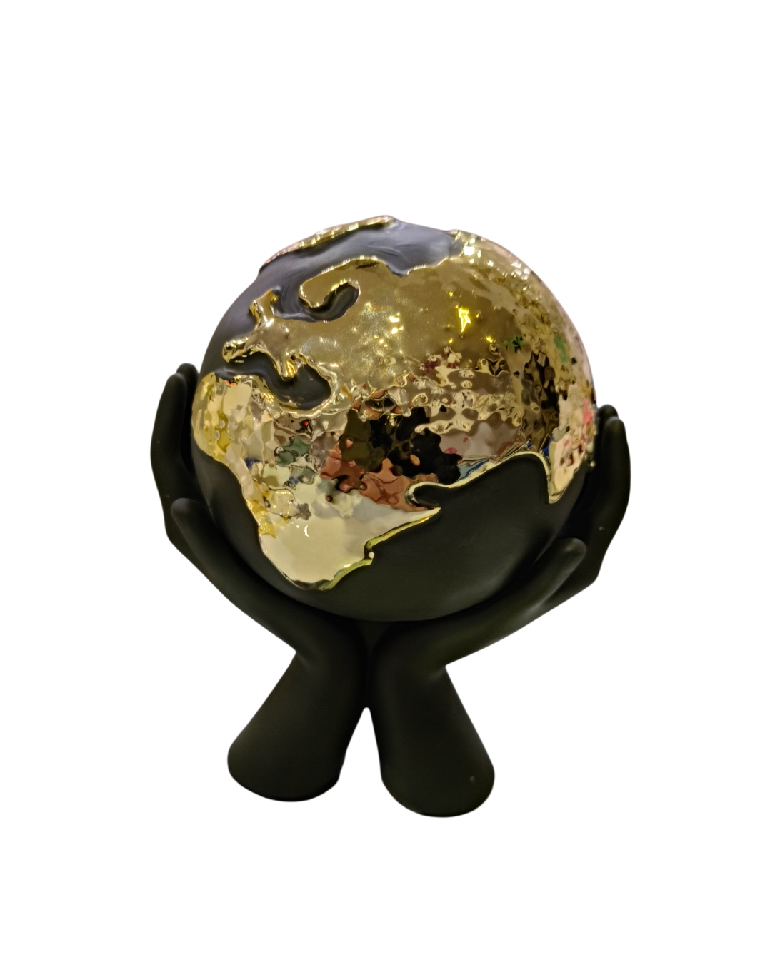Scultura da tavolo moderna che si distingue per il suo design originale e curato nei minimi dettagli. Realizzata marmorino e decorata interamente a mano, questa creazione di Bongelli Preziosi rappresenta due mani nere che sostengono delicatamente un globo dorato. Il contrasto tra i colori esalta l’eleganza di questo soprammobile, perfetto per decorare ambienti come ingressi, salotti o studi. Grazie alle sue dimensioni compatte, 13 cm di altezza e 12 cm di larghezza, si adatta facilmente su mensole, tavoli o scrivanie, aggiungendo un tocco di classe a qualsiasi spazio.