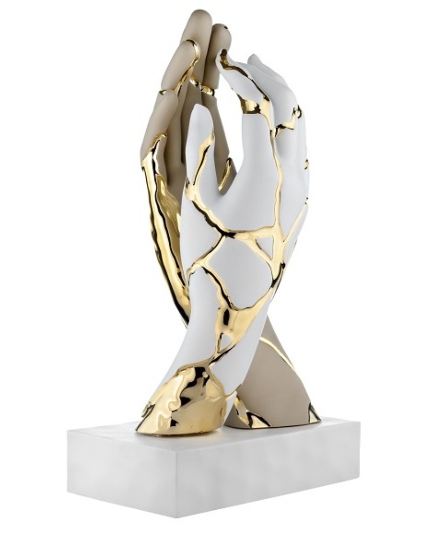 Bongelli scultura mani h.22 tortora /bianco e oro base bianca.
