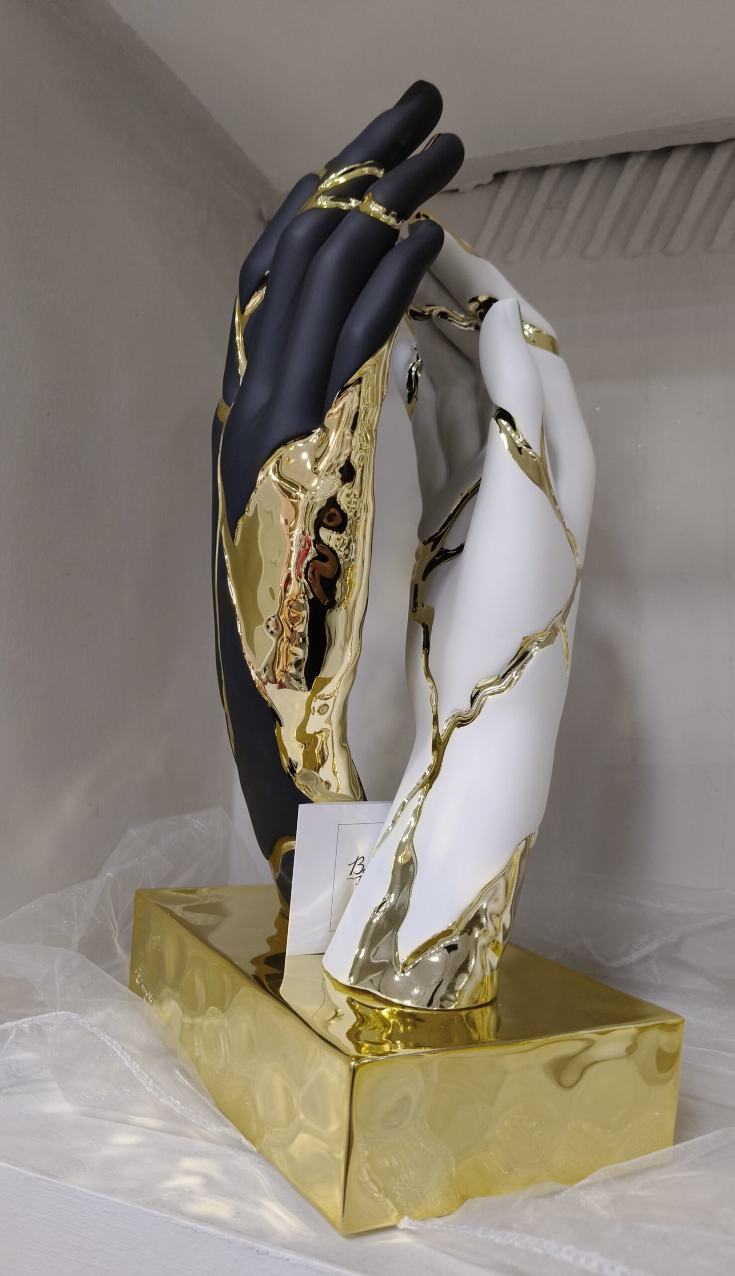 Bongelli scultura mani h.38 cm nera/oro /bianco base oro.