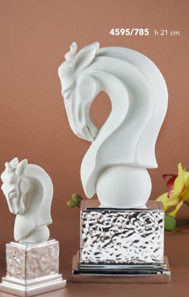 Cavallo in polvere di marmo con base in argento h21 cm brand Giovinarte prodotto interamente in italia