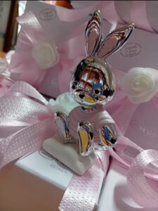 Coniglio in argento con dettaglio rosa su richiesta disponibile anche in CELESTE materiale ARGENTO brand GIOVINARTE