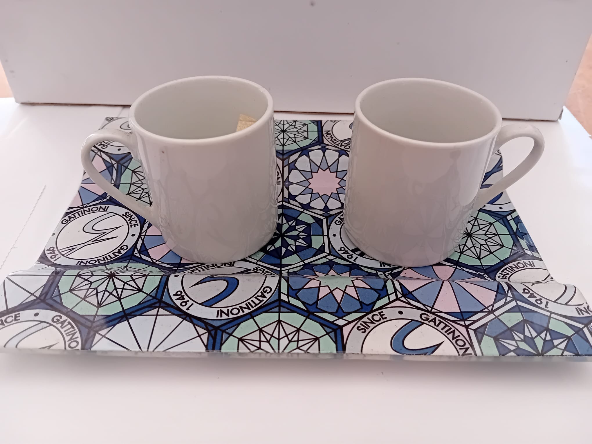 COPPIA DI TAZZINE CON VASSOIO TéT à TéT GATTINONI ,LINEA TEODOSIA BLUE .REGALO UTILE PER GLI AMANTI DEL REGALO UTILE MA NELLO STESSO TEMPO ANCHE ELEGANTE DA TENERE IN ESPOSIZIONE. MISURE 21X16CM