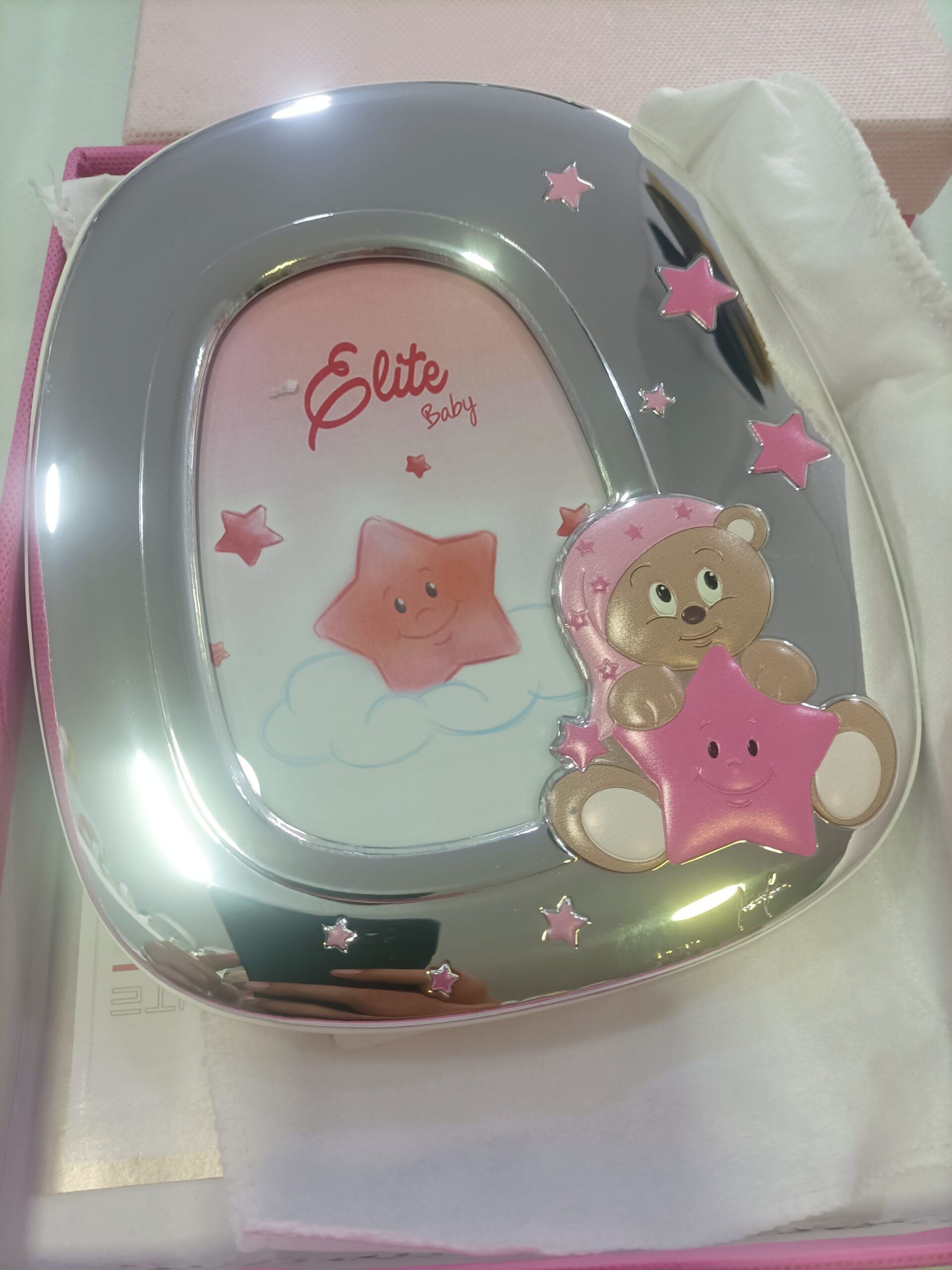 Cornice orsetto baby rosa misura 13×18 cm in argento 925 ideale per battesimo, nascita, festa a tema.Prodotto 100% made in Italy