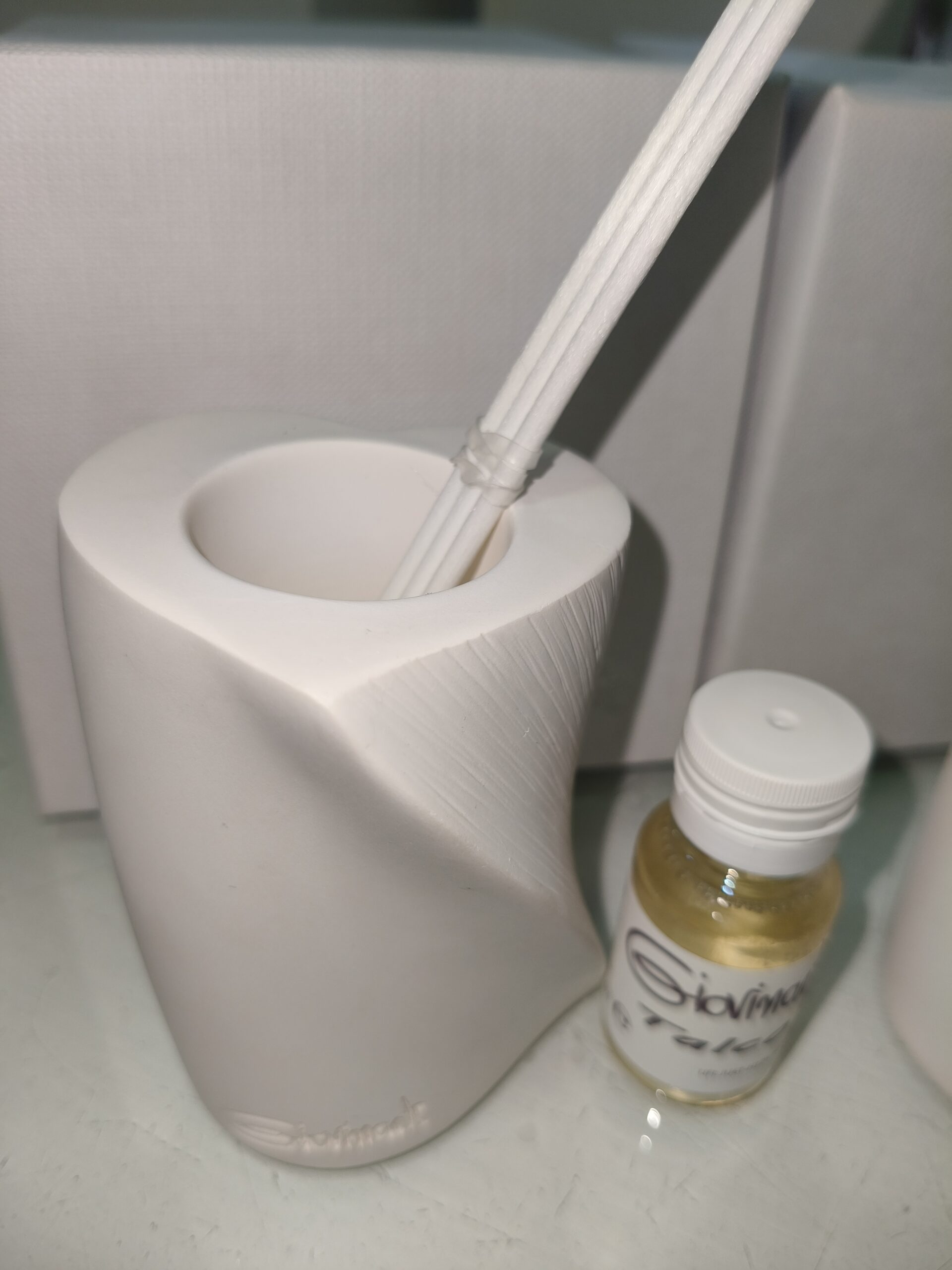 Elegante Profumatore brand Giovinarte in polvere di marmo bianco compreso di fragranza e box grandezza diametro6cm altezza 7.5cm ideale come bomboniera matrimonio, anniversario o per festeggiare un evento speciale.