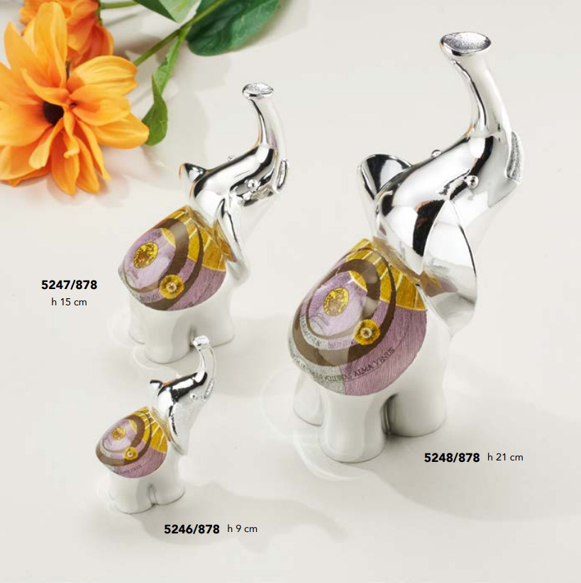 | Misura | 5248/878 Elefante Grande H 21 cm in resina argentata e vetro linea Gattinoni Planetarium Glicine, 5247/878 Elefante medio H 15 cm in resina argentata e vetro linea Gattinoni Planetarium Glicine, 5246/878 Elefante piccolo h 9 cm in resina argentata e vetro linea Gattinoni Planetarium Glicine ideale x bomboniera |