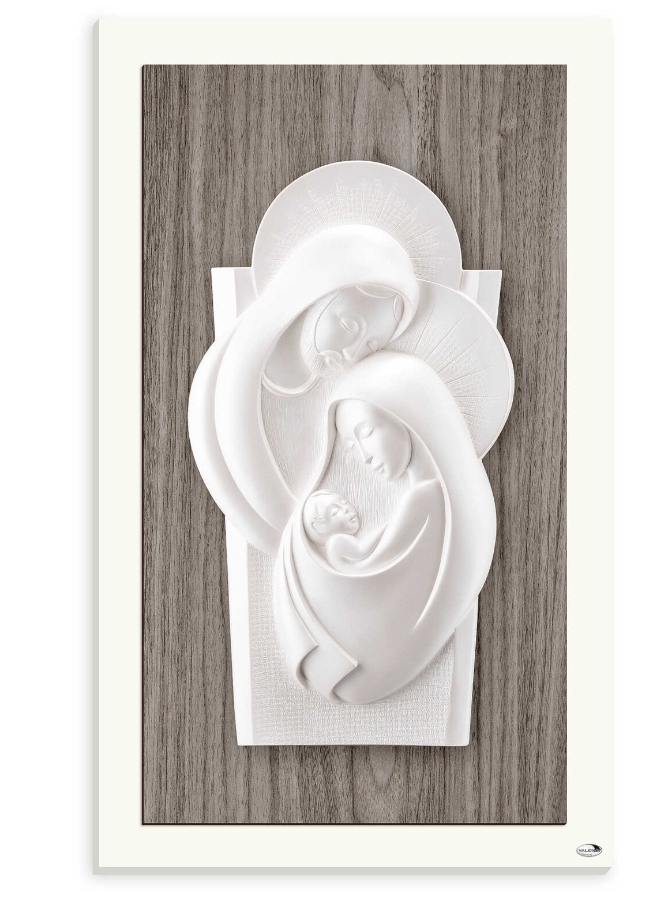 Icona pannello Sacra Famiglia in resina e legno Teak da parete o da appoggio. Misure cm 17×25. Marchio Valenti Argenti