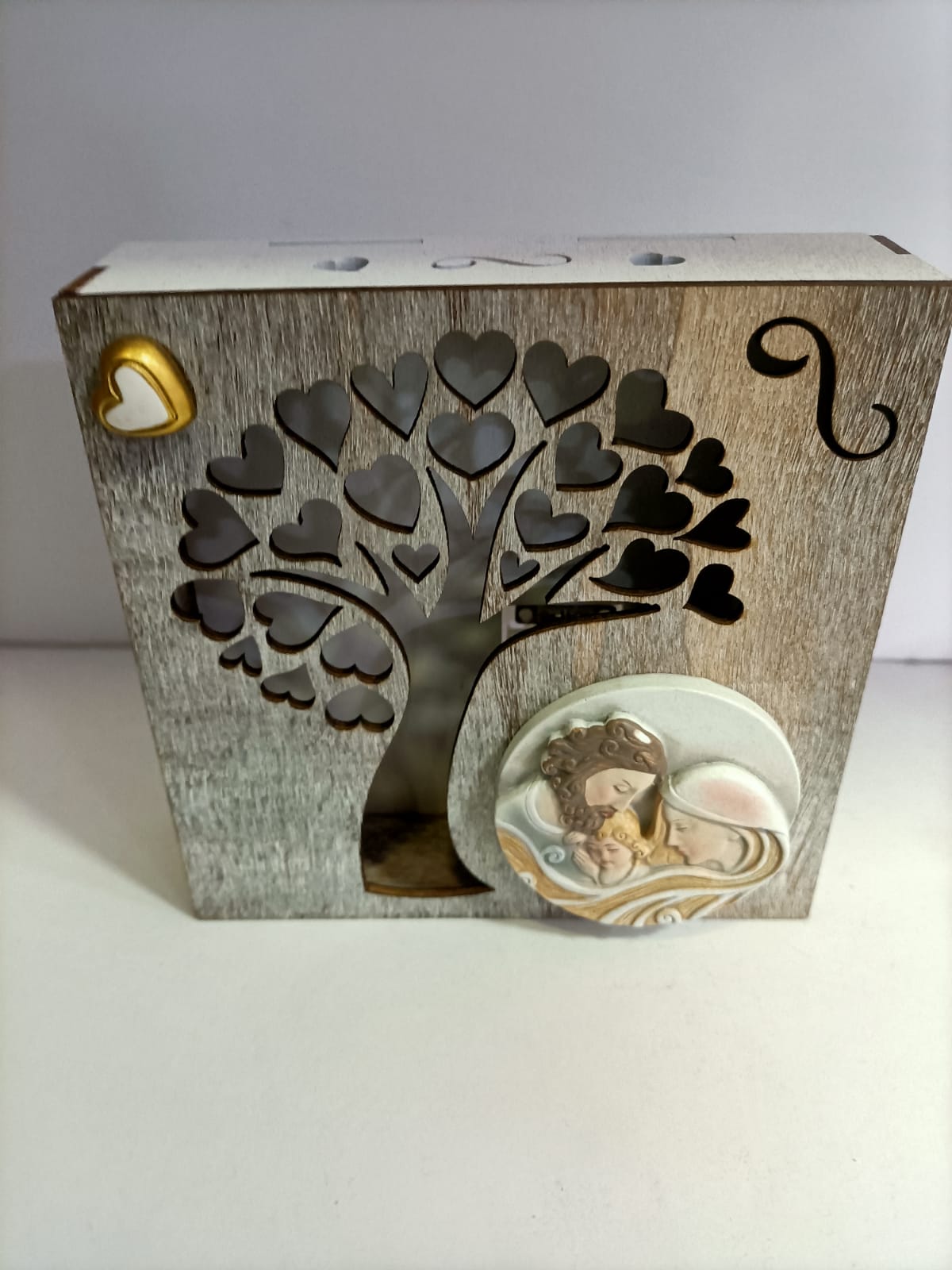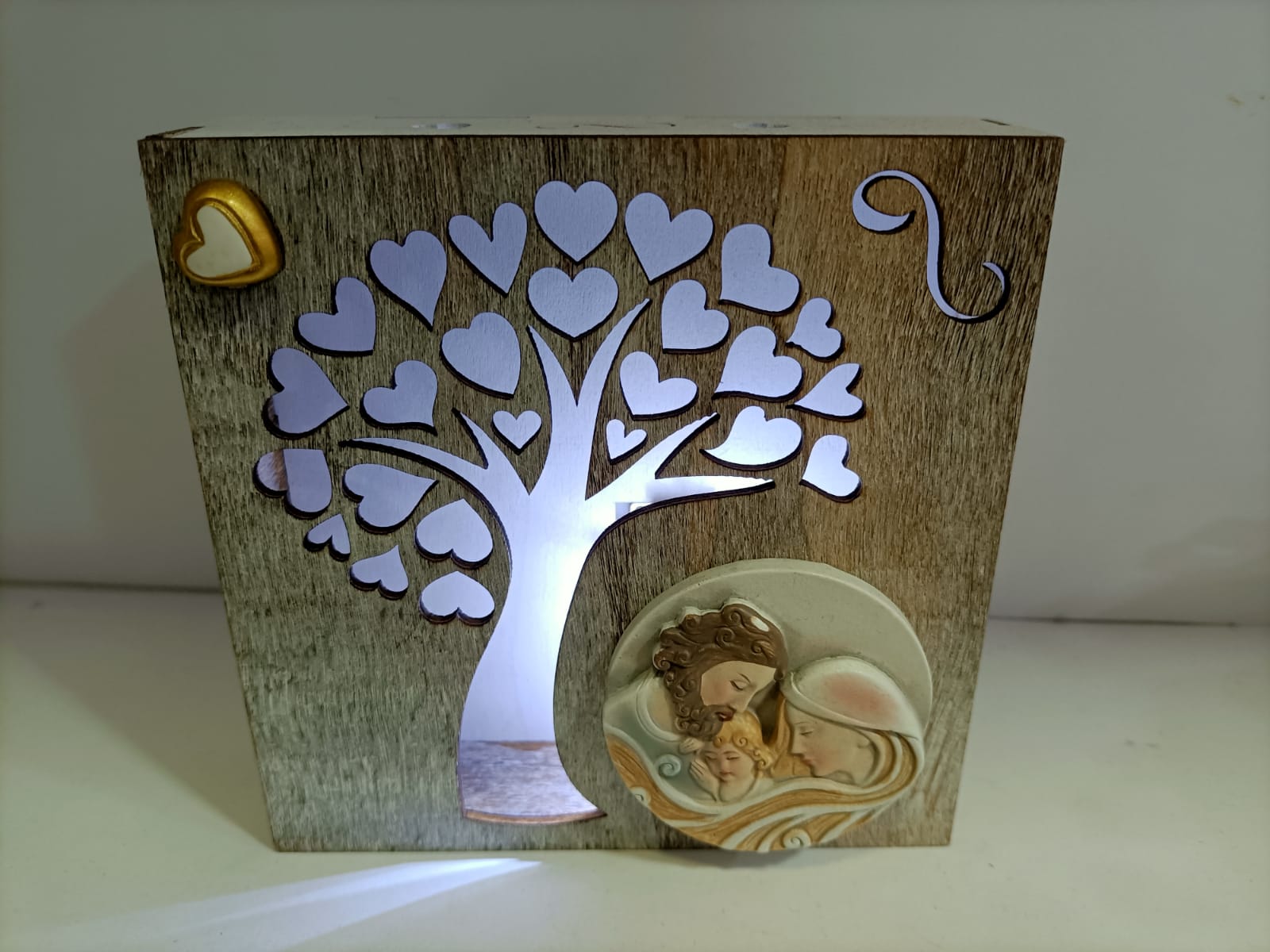 Led Quadretto Icona Sacra Famiglia con Albero della Vita, linea Sacra. Prodotto ideale per Bomboniere MATRIMONIO/BATTESIMO