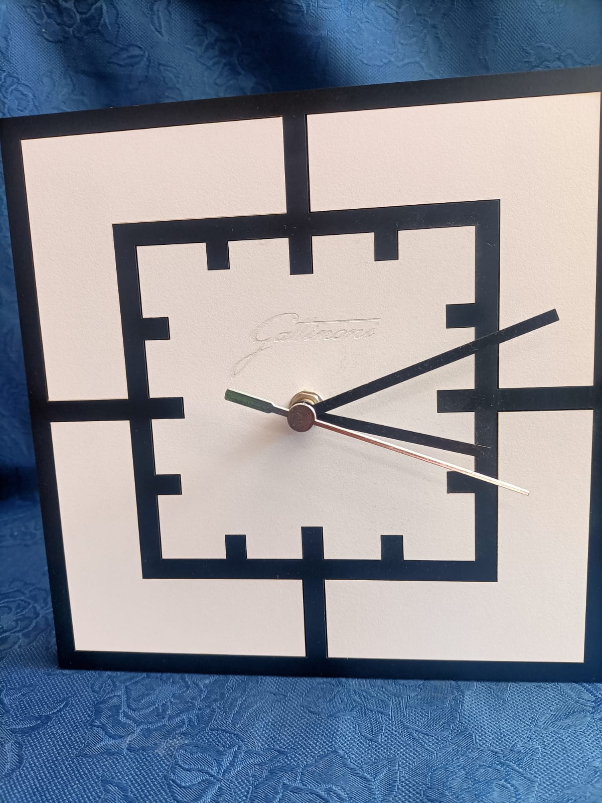 SPETTACOLARE OROLOGIO GATTINONI COLORE BIANCO /NERO MISURA CM 22X 22 CM CON BASE APPOGGIO MARERIALE LEGNO PRODOTTO MADE IN ITALY ADATTO PER AMBIENTI MODERNI