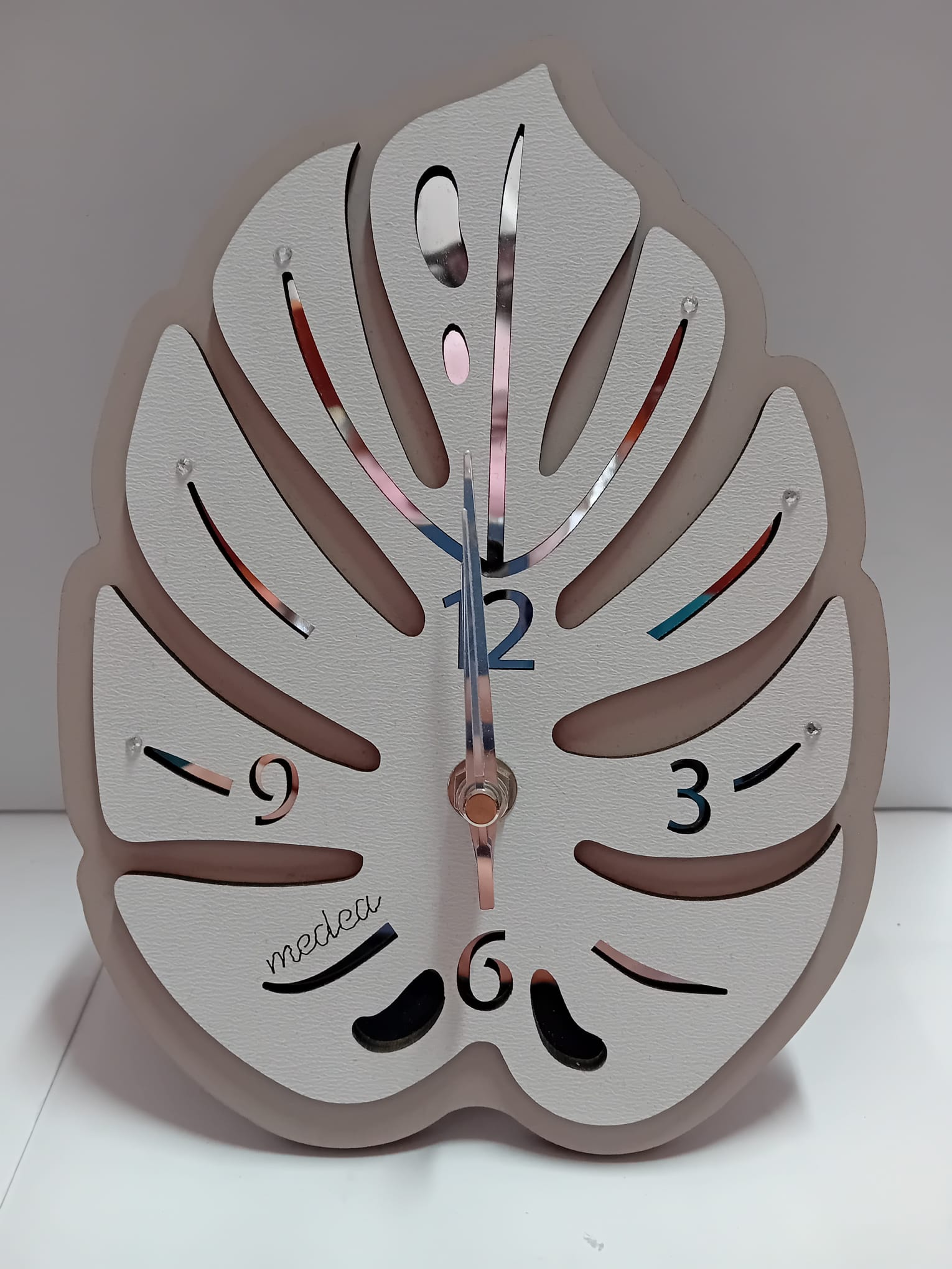 Orologio da appoggio in legno bicolore tortora bianco dettagli in plexi misura h 22,5 cm larg 16 cm .Prodotto made in italy studiato per rendere unico il tuo ambiente .