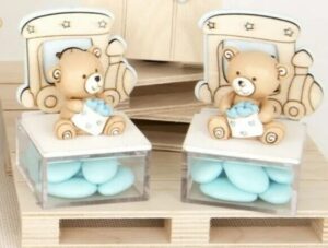 Portaconfetti Orsetti CELESTE con Cuoricini 2 ASSORTITI. Prodotti ideale per Bomboniere Originali.