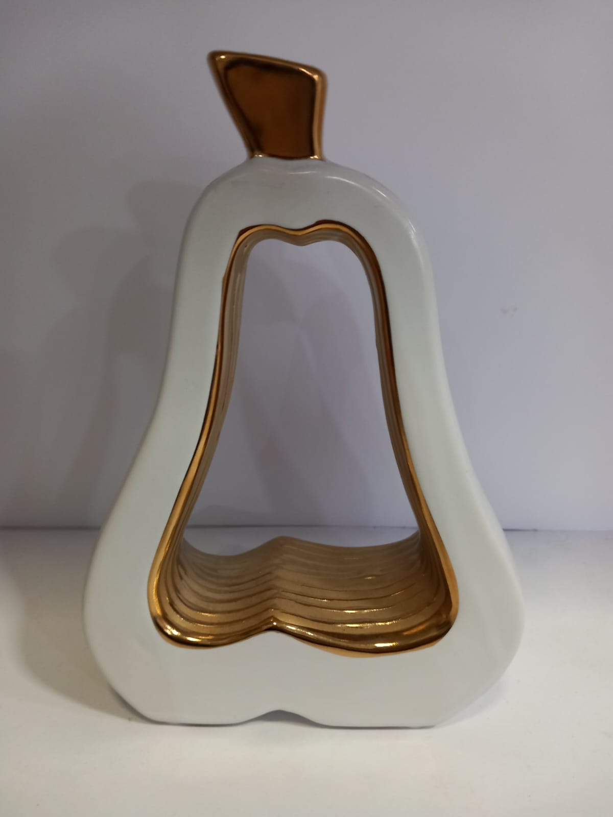 ELEGANTISSIMA PERA COLORE  BIANCO DETTAGLI IN ORO MATERIALE CERAMICA  MISURA H 22 X LARG 15 IDEALE COME COMPLEMENTO D’ARREDO MODERNO