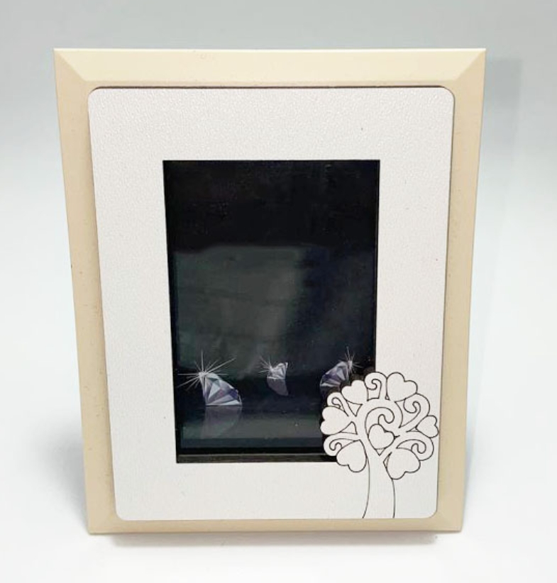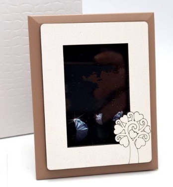 Bomboniera, perfetta per celebrare un momento speciale come un matrimonio o un anniversario. Si tratta di un piccolo portafoto realizzato in resina di forex, con un inciso dell’albero della vita al lato.
