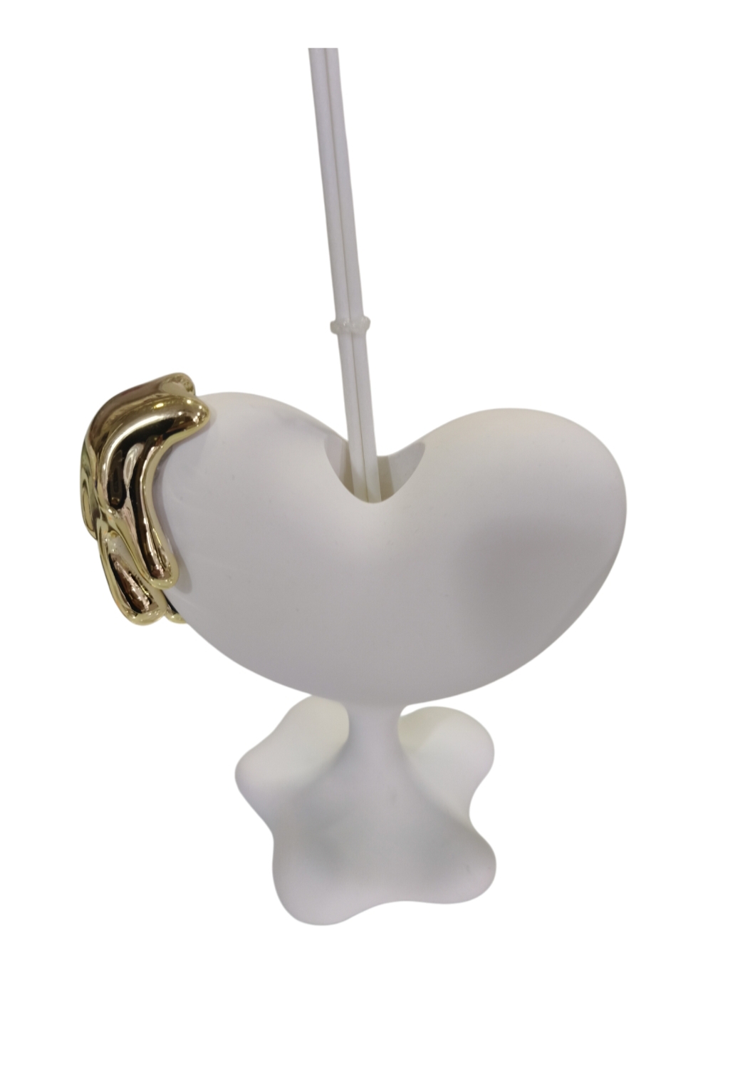 Elegante Profumatore bianco in polvere di marmo con goccia oro ideale per stupire i tuoi ospiti regalandolo come bomboniera ma anche come abbellimento per i tuoi ambienti.Prodotto made in Italy materiale polvere di marmo  misura h 13 cm  diametro cuore 12 cm base 8cm .