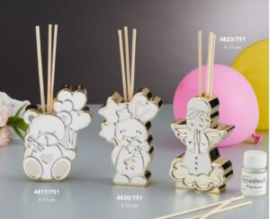 Profumatori in argento h 11.5 cm ideale per bomboniera disponibili in tre varianti orsetto-coniglio-angelo e in due colorazioni argento o oro