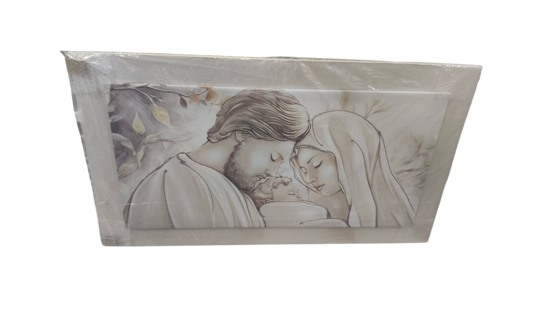 CAPEZZALE SACRA FAMIGLIA MISURA CM 120X70 CM MASSIMO INGOMBROÂ PRODOTTO ARTIGIANALE IN LEGNOÂ E TELAÂ COLORE CORNICE PERLA DETTAGLI IN GLITTER ARGENTO PRODOTTO MADE IN ITALY