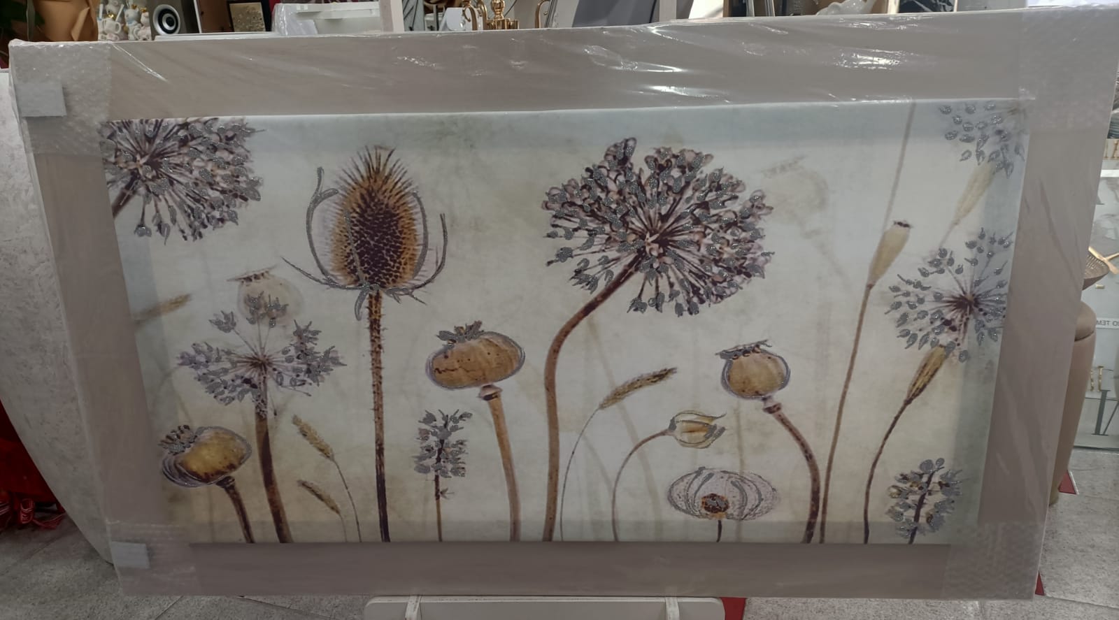 QUADRO IN EGNO CON DECORO FIORI CON CORNICE TORTORA FIORI COLORATI CON DETTAGLI GLITTER ARGENTO MISURA MASSIMO INGOMBRO CM 120X70 CM PRODOTTO ARTIGIANALE MADE IN ITALY