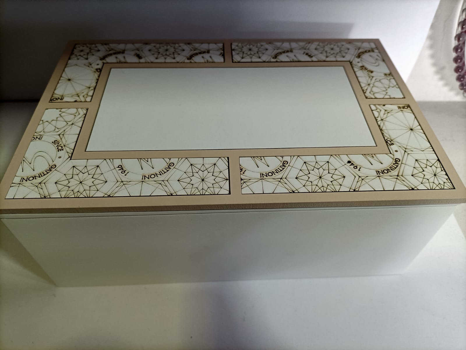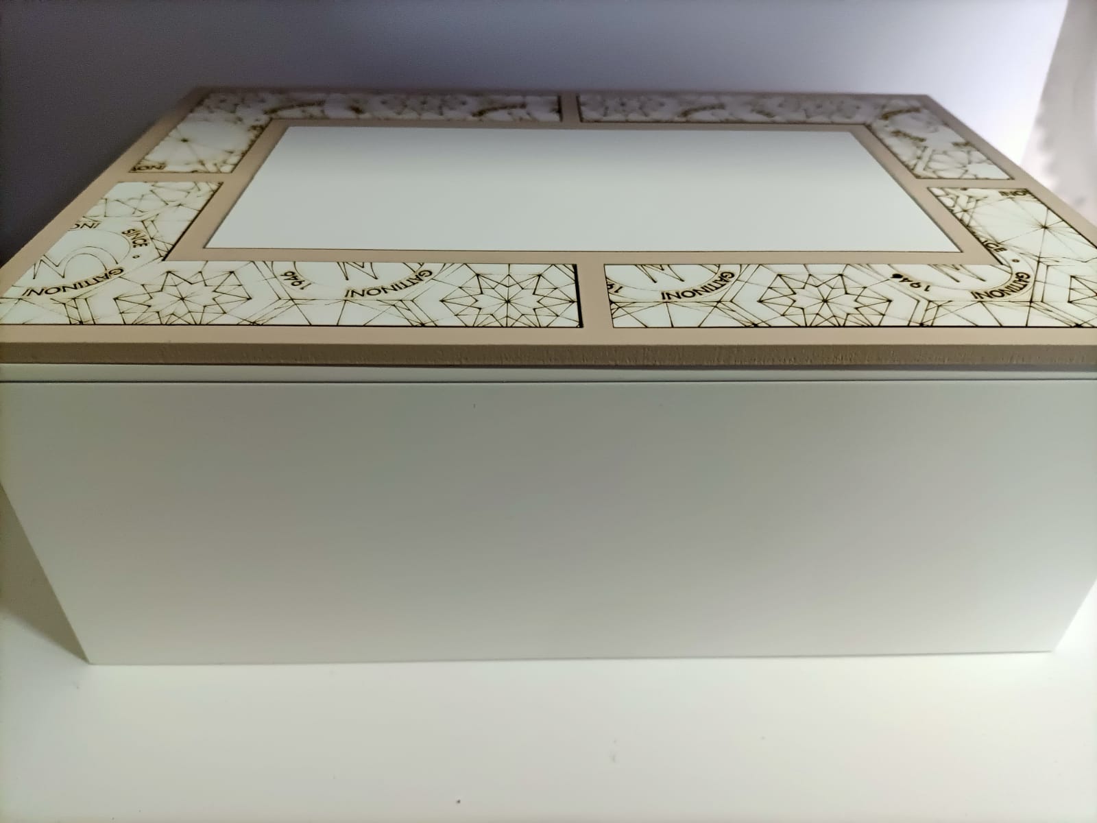 ELEGANTISSIMA SCATOLA PORTAGIOIE GATTINONI COLORE BIANCO E TORTORA MATERIALE LEGNO MISURE ALTEZZA 9,5 CM CIRCA X LUNGHEZZA 23CM LARGHEZZA 15 CM IDEALE PER QUALSIASI REGALO E X STUPIRE CHI LO RICEVE
