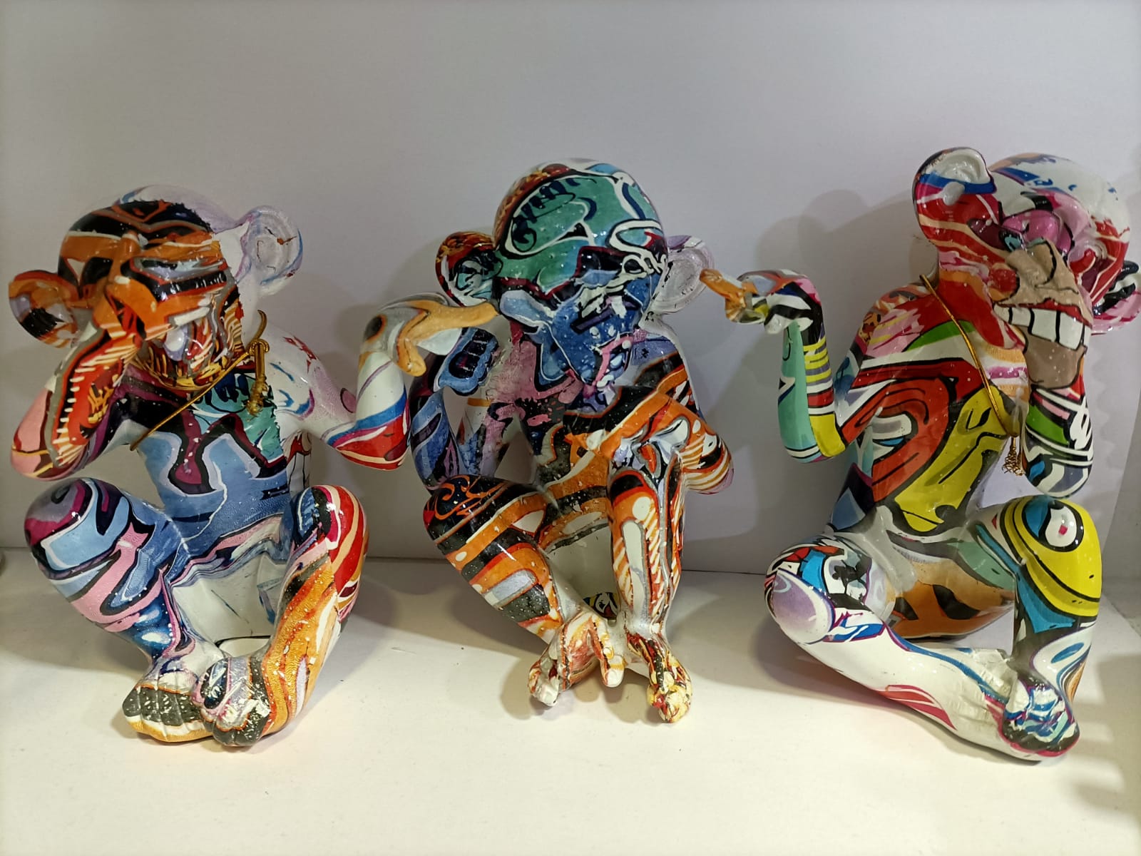 SCIMMIE NON VEDO /NON SENTO /NON PARLO  PRODOTTO IN RESINA DURA DECORO GRAFFITI MISURA H 16CM X13 CM CIRCA OGGETTO RIVOLTO A PERSONE CHE AMANO DISTINGUERSI DALLA SOLITA MONOTONIA