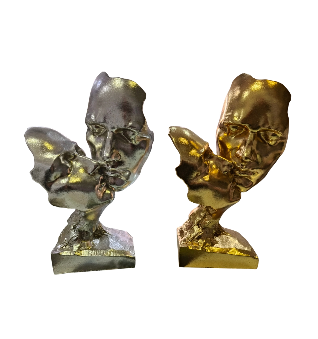 Spettacolari sculture in resina artigianali che raffigura una coppia con bacio materiale resina colori argento o oro.