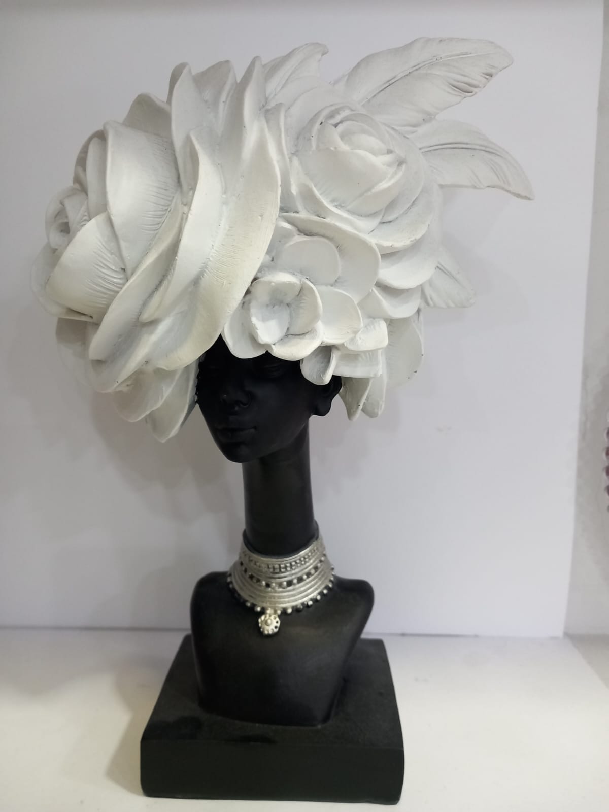 Recensisci per primo “SCULTURA DONNA NERA CON CAPPELLO ROSE BIANCHE E COLLANA”