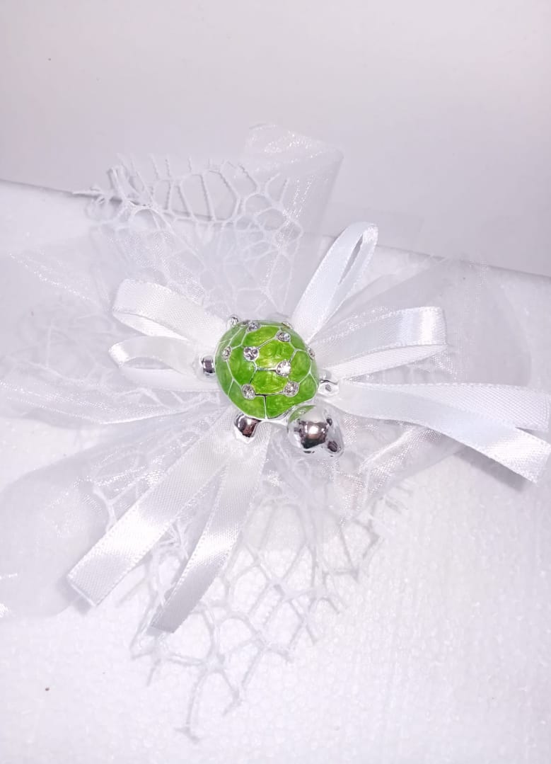 Bomboniere in offerta, tartaruga con strass, materiale resina colorata argento e madreperla VERDE, idea originale per battesimo nascita e comunione . misura 6 cm.