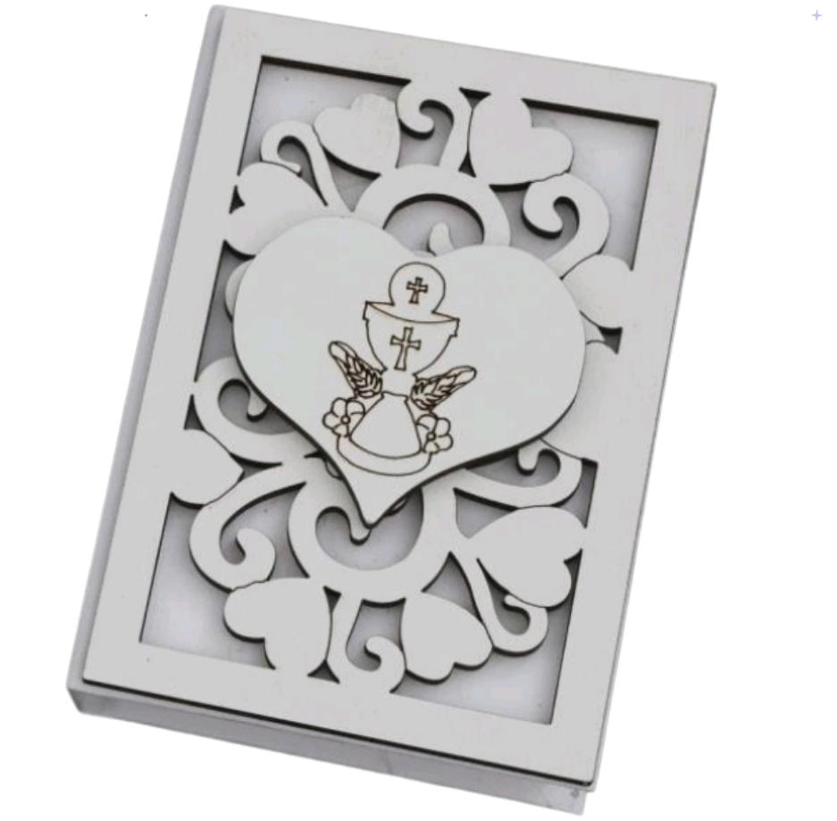 Vangelo con copertina in legno decorato rappresenta una scelta raffinata e particolare per le bomboniere delle comunioni/cresima. Con dimensioni di circa 11 x 8 cm prodotto made in Italy di altissima qualitร e dettagli che lo rendono unico.