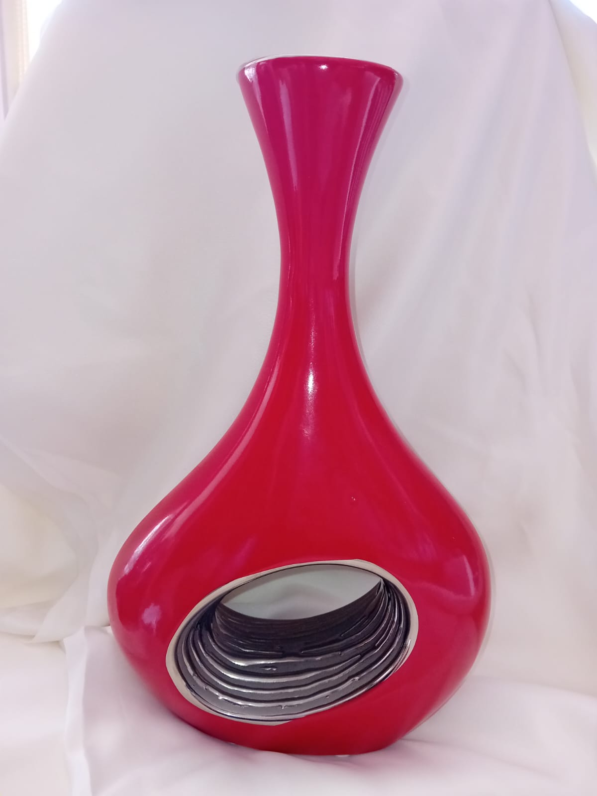elegante e raffinato vaso moderno di colore rosso e argento adatto a ambienti moderni materiale ceramica h 32 cm.